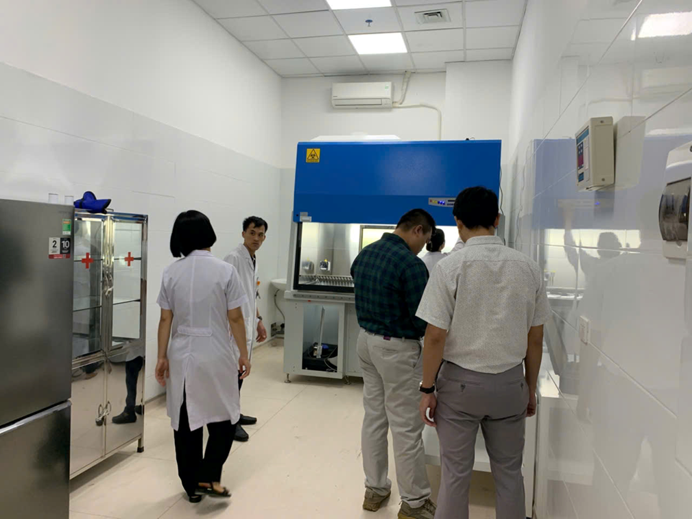 Ảnh 2: Đoàn công tác Bộ Khoa học và Công nghệ kiểm tra, thẩm định cơ sở vật chất tại bệnh viện
