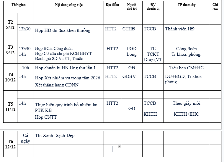 LỊCH CÔNG TÁC TUẦN 49(8/12-12/12/2025)