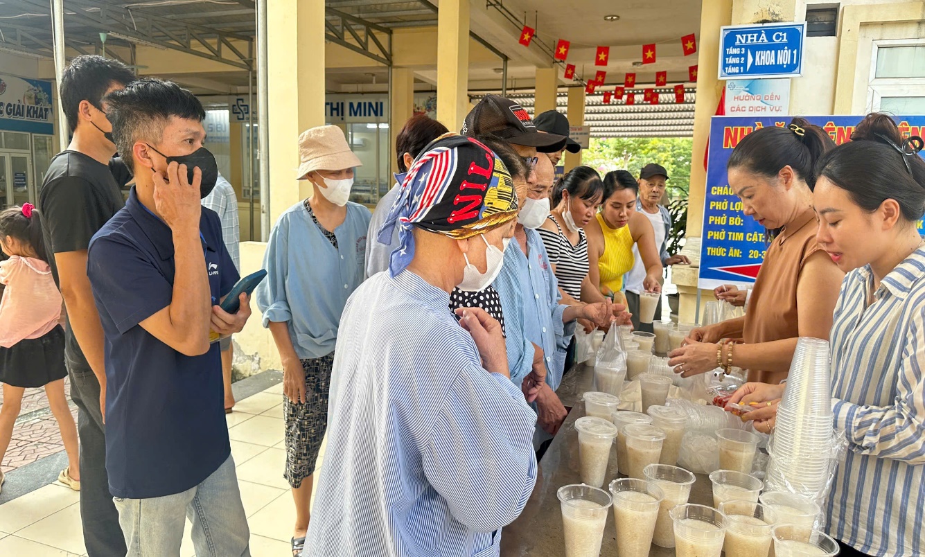 Hình ảnh: Thành viên Câu lạc bộ “Quà tặng cuộc sống” trao những suất cháo nóng hổi, đầy đủ dinh dưỡng đến người bệnh