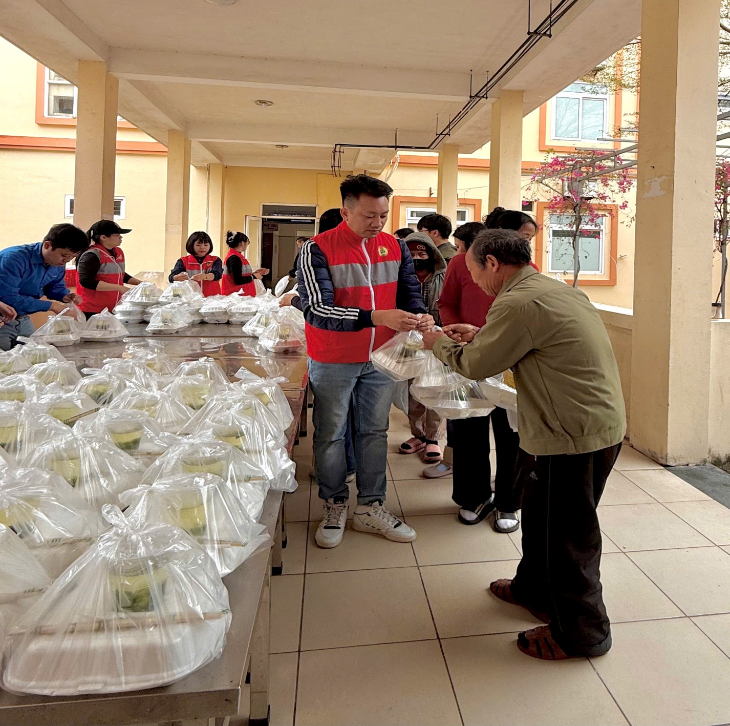 Hình ảnh 1: Các thành viên của Công đoàn Công ty TNHH Taixin Printing Vina chia sẻ suất ăn đến người bệnh