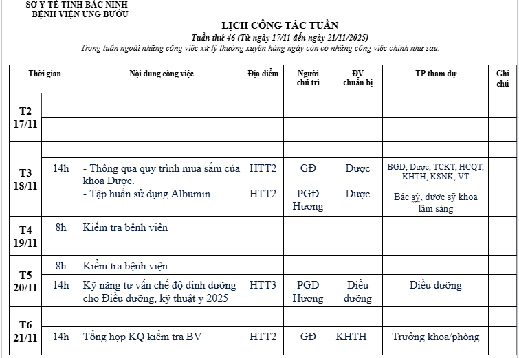 https://bvungbuoubacninh.com/lich-cong-tac-tuan/tuan-thu-46-tu-ngay-17-11-den-ngay-21-11-2025-1242.html