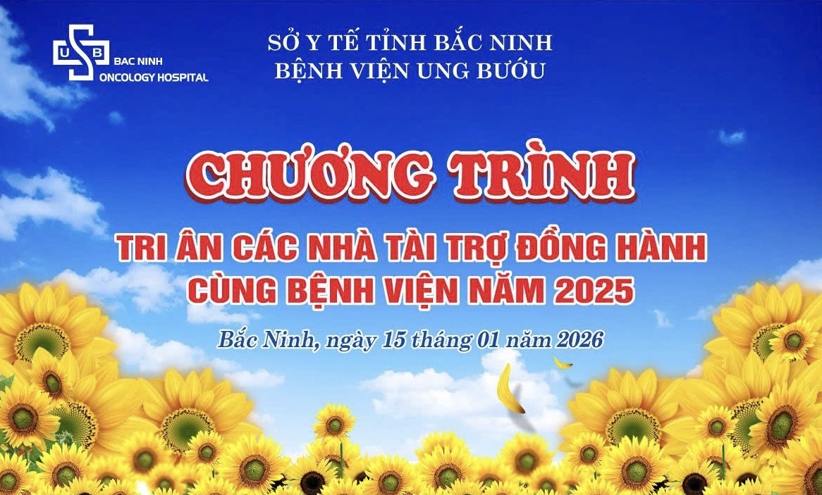 Chiều ngày 15/01/2026, Bệnh viện Ung bướu Bắc Ninh đã tổ chức Chương trình tri ân các nhà tài trợ đồng hành cùng bệnh viện năm 2025 nhằm ghi nhận, cảm ơn sự quan tâm, hỗ trợ và đồng hành của các tổ chức, doanh nghiệp, cá nhân hảo tâm trong công tác chăm sóc, hỗ trợ người bệnh ung thư.