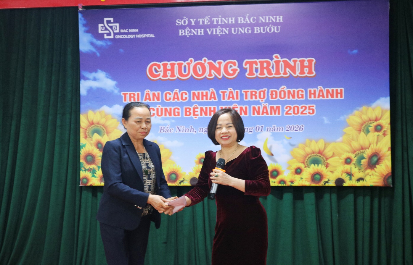 Chương trình tri ân các nhà tài trợ năm 2025 là hoạt động ý nghĩa, thể hiện sự gắn kết giữa bệnh viện và cộng đồng, góp phần lan tỏa các giá trị nhân văn, đồng thời tạo động lực để công tác xã hội của Bệnh viện Ung Bướu Bắc Ninh tiếp tục được duy trì và phát triển trong thời gian tới./.
