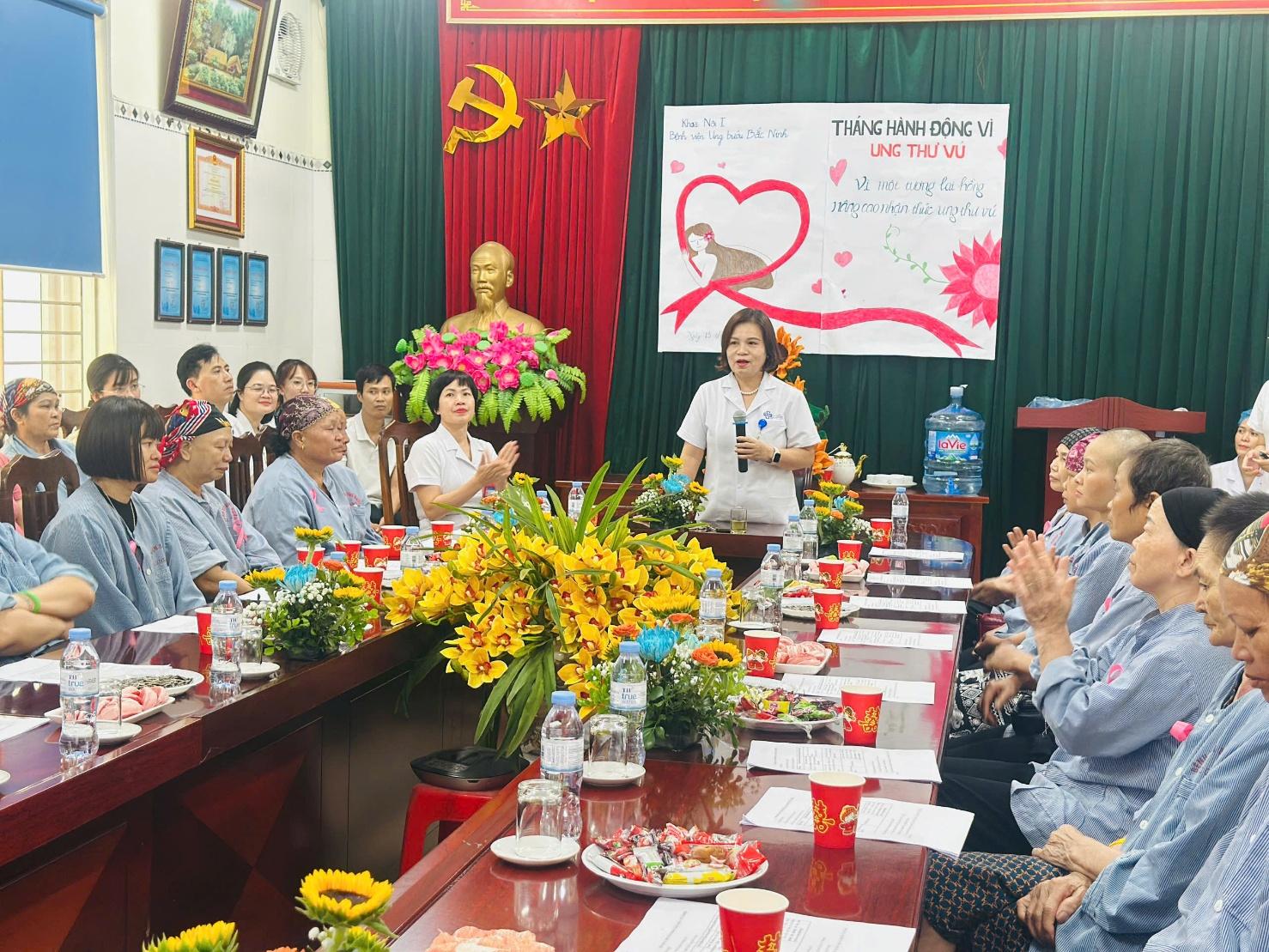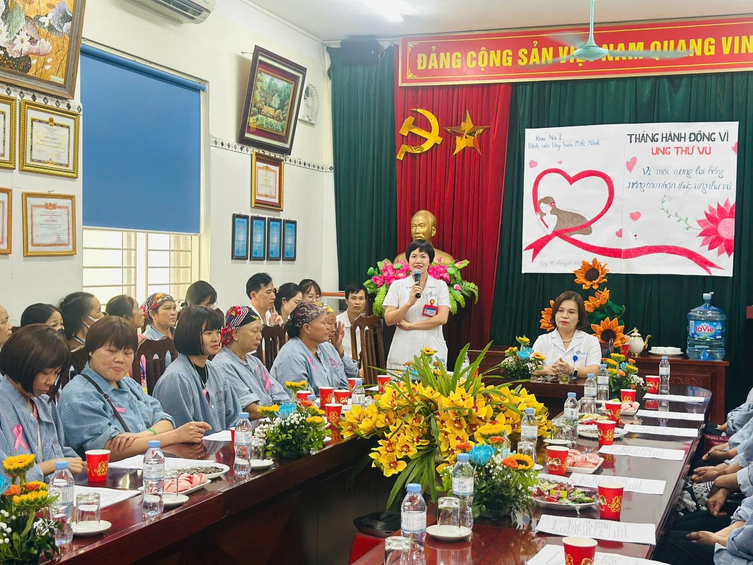 Tháng 10 về, mang theo sắc hồng của yêu thương, sẻ chia và hy vọng - sắc hồng của những người phụ nữ kiên cường đang từng ngày chiến đấu với căn bệnh ung thư vú. Hưởng ứng Tháng hành động vì phụ nữ Việt Nam và Tháng nâng cao nhận thức về ung thư vú. Chiều ngày 15/10/2025, Bệnh viện Ung Bướu Bắc Ninh tổ chức chương trình “Truyền thông - Giáo dục sức khỏe trên bệnh nhân ung thư vú”, nhằm lan tỏa thông điệp nhân văn: “Phát hiện sớm - Điều trị kịp thời - Sống khỏe mạnh cùng ung thư vú.”