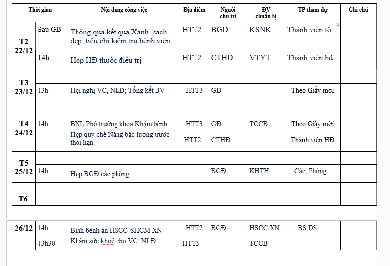 LỊCH CÔNG TÁC TUẦN 51 ( 22/12-26/12/2025)
